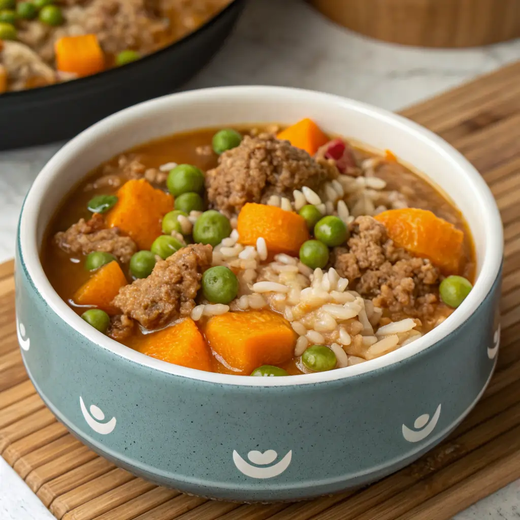 Serve slightly warm for aroma and palatability. This simple blend works well as a light meal or topper during weight loss plans. Consult your vet for long-term balance and supplement needs.