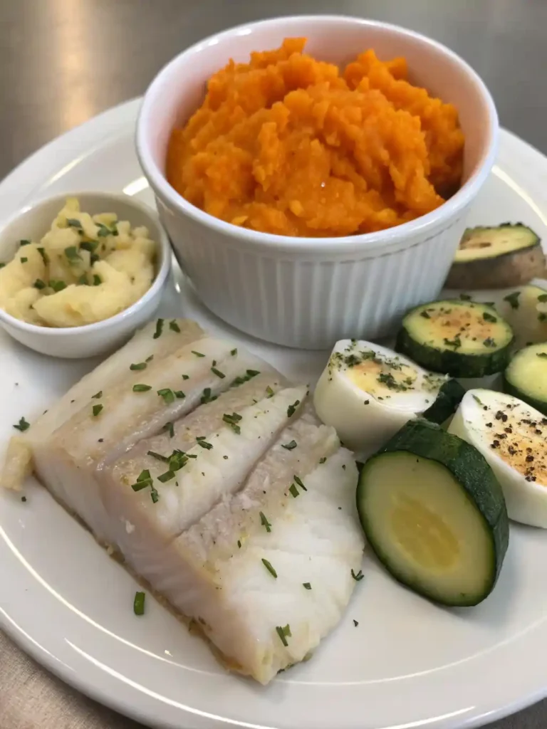 - ½ cup boneless cod or haddock (boiled or steamed)